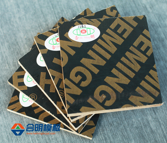合明覆膜板就其表面覆膜不同而分为英文覆膜板、棕色覆膜板、黑色覆膜板。