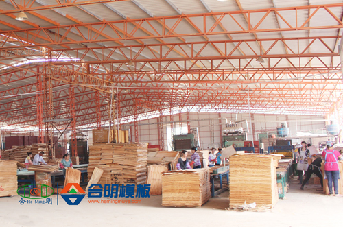 合明木业拥有2大生产车间,占地40000平方米,车间共设有40条模板生产线及66台模板生产压机,日产量达50000张建筑模板,可保质、保量、及时生产客户下定的模板。