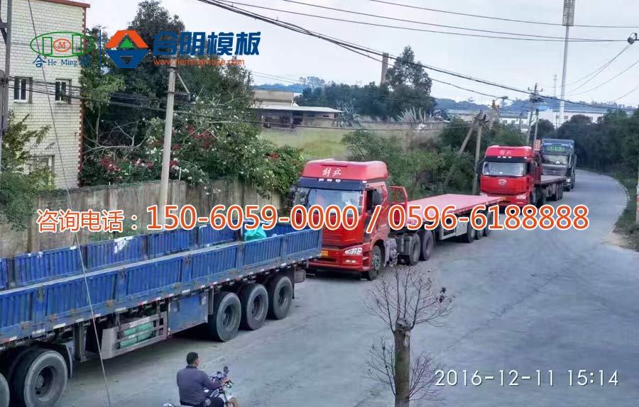 近几日,合明模板装货现场十分火爆,连续多天出现发货高潮,12月10日、11日、12日甚至突破了30车/天。运输车从工厂门口排到了厂区内。