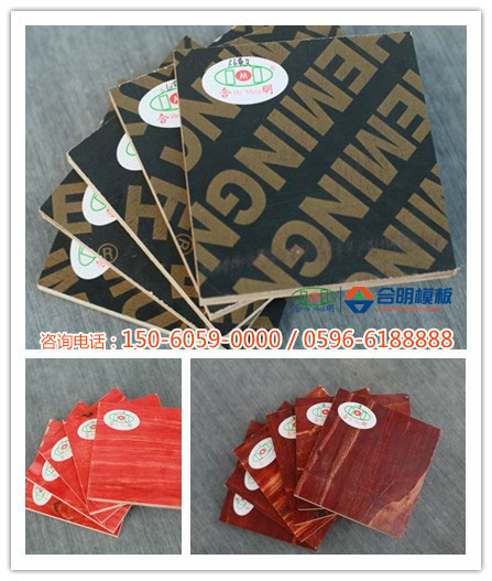 合明模板,坚硬耐磨、密实牢固、平整细腻、柔韧性好、超强防水、不易脱胶、周转次数高,赢得广大用户青睐。合明模板质量看得见,高压锅沸水煮2小时不开胶,质量保证,好评不断,品牌知名度高,获得“中国建筑模板十大品牌”、“福建省著名商标”等多项荣誉。合明共有建筑模板近200种,如一建筑模板超市,产品种类多,可挑选,客户都能在合明找到适合自己工地的产品。