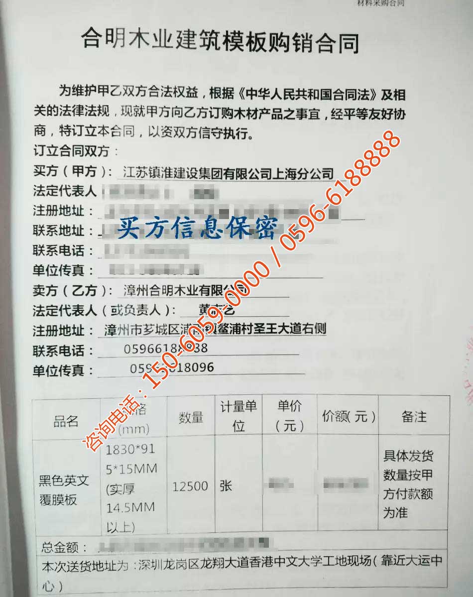 合明模板,坚硬耐磨、密实牢固、平整细腻、柔韧性好、超强防水、不易脱胶、周转次数高,赢得广大用户青睐。合明模板质量看得见,高压锅沸水煮2小时不开胶,质量保证,好评不断,品牌知名度高,获得“中国建筑模板十大品牌”、“福建省著名商标”等多项荣誉。合明共有建筑模板近200种,如一建筑模板超市,产品种类多,可挑选,客户都能在合明找到适合自己工地的产品。