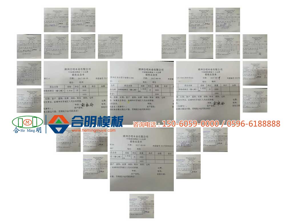 合明模板,坚硬耐磨、密实牢固、平整细腻、柔韧性好、超强防水、不易脱胶、周转次数高,赢得广大用户青睐。合明模板质量看得见,高压锅沸水煮2小时不开胶,质量保证,好评不断,品牌知名度高,获得“中国建筑模板十大品牌”、“福建省著名商标”等多项荣誉。合明共有建筑模板近200种,如一建筑模板超市,产品种类多,可挑选,客户都能在合明找到适合自己工地的产品。