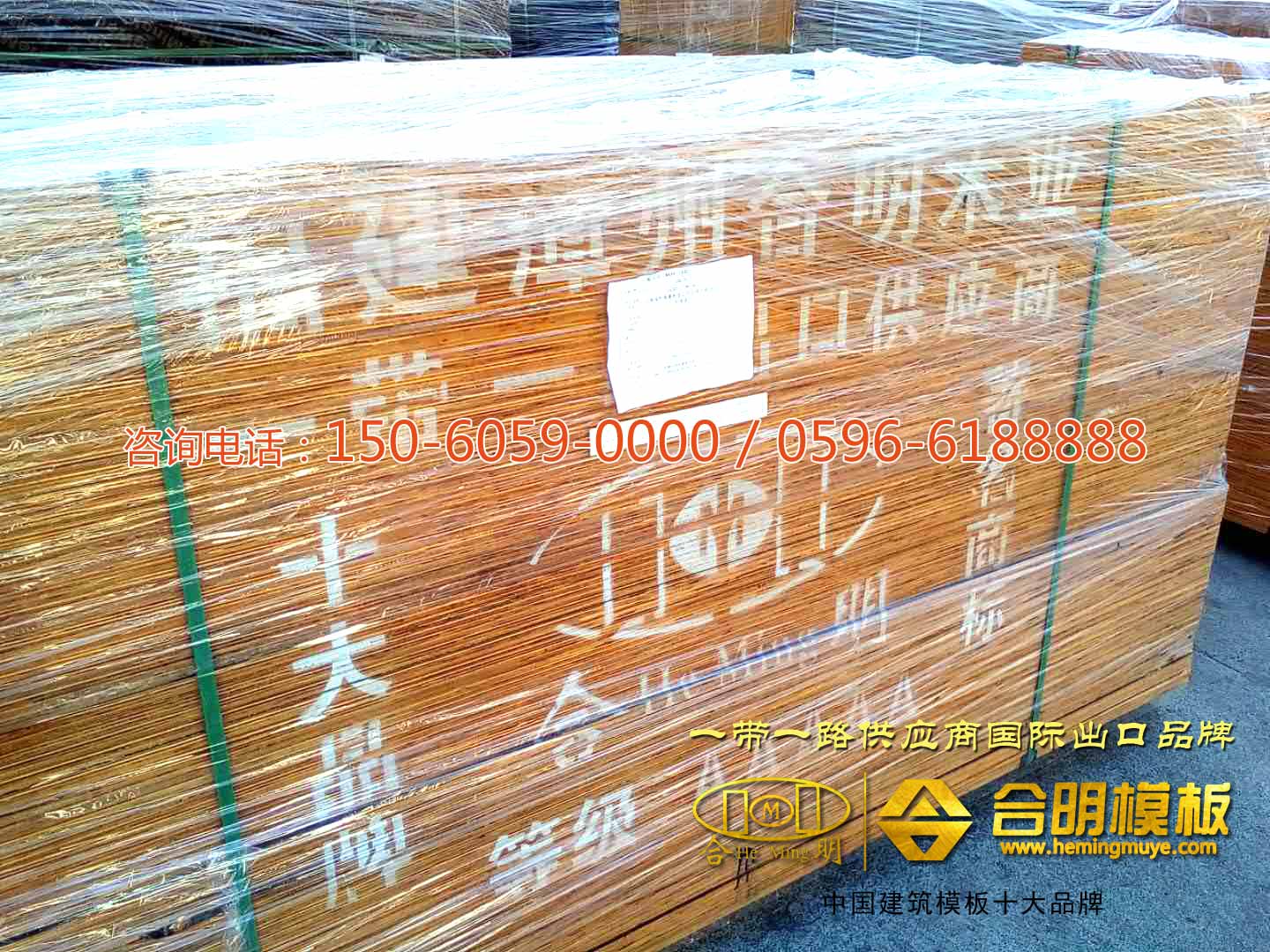 合明模板,坚硬耐磨、密实牢固、平整细腻、柔韧性好、超强防水、不易脱胶、周转次数高,赢得广大用户青睐。合明模板质量看得见,高压锅沸水煮2小时不开胶,质量保证,好评不断,品牌知名度高,获得“中国建筑模板十大品牌”、“知名商标”等多项荣誉。合明共有建筑模板近200种,桉木模板、松木模板、桉木胶合板、松木胶合板,各类型木模板、方木、性价比高于铝模板、方钢,如一建筑模板超市,产品种类多,可挑选,客户都能在合明找到适合自己工地的产品。