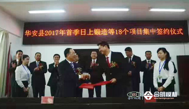 (合明模板总经理黄志艺与华安县领导签约)