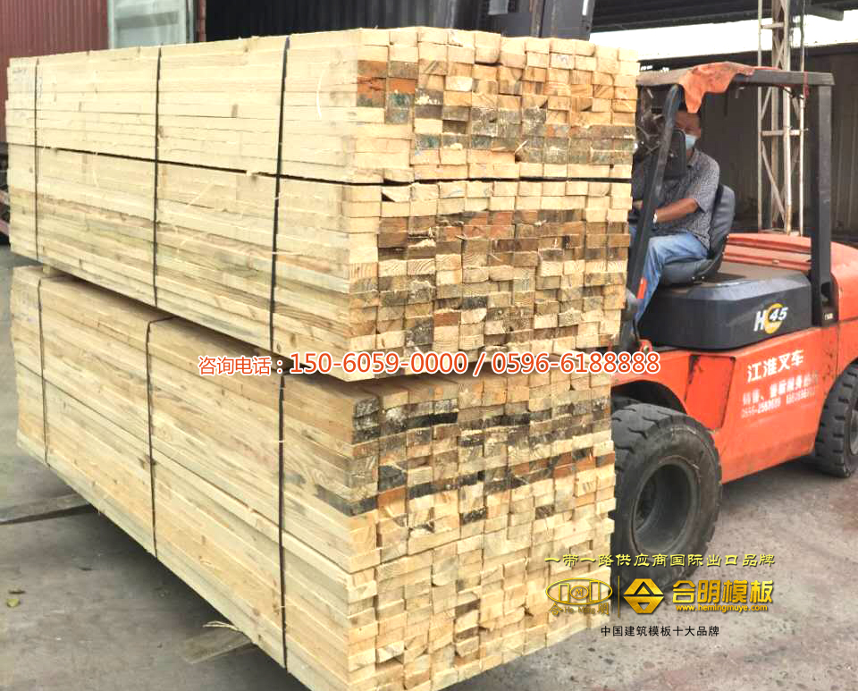 合明建筑木方均选用新鲜笔直少结疤的海外购进的原木为原材料,精心割据而成,让木方承受压力的强度和周转次数均到达标准。合明建筑木方可搭配合明模板发车,节省运费。