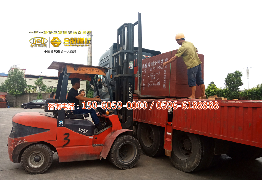 建筑模板发货,合明模板,福建建筑模板第一大厂家,覆膜板,酚醛板