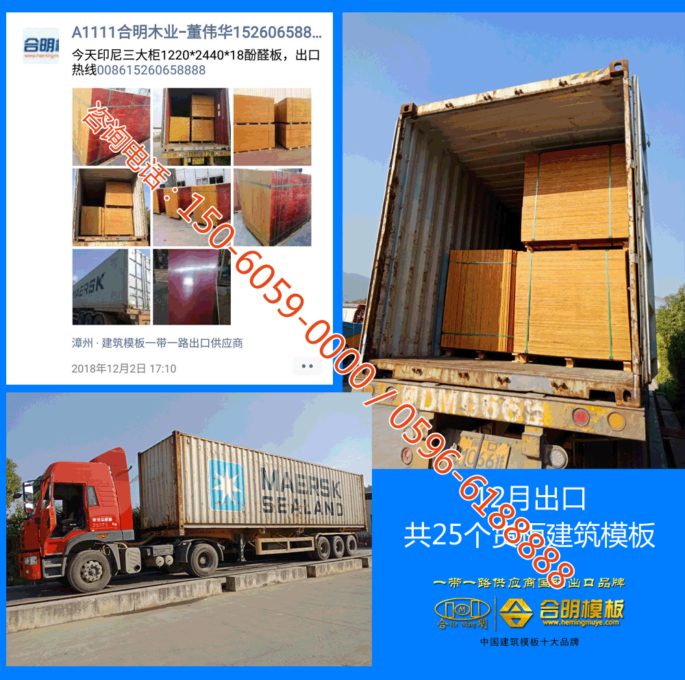 本月合明模板主要出口东南亚地区,共25货柜。合明覆膜板凭借平整的板面、周转次数多、坚实易于切割的品质,成为合明出口黑马。