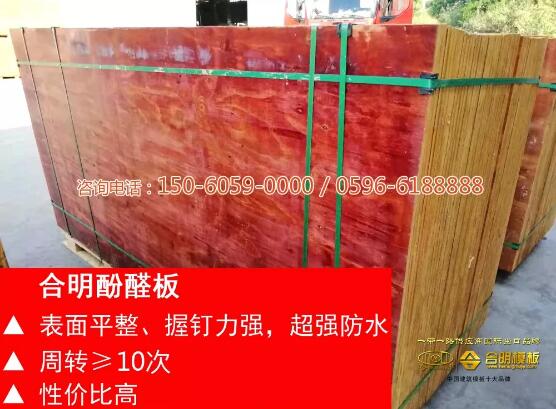合明模板在工程施工中周转次数超标准,平整度好,拆模简易,受到众多施工单位好评,回头客比比皆是。