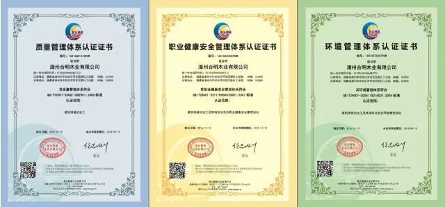 合明旗下设营销中心、国际事业部、物流园、原木贸易公司、原木旋切厂、晒板场、胶水厂、方木加工厂等建筑模板生产附属机构,踏实稳步经营,合明模板通过ISO9001质量管理体系,连续多年获得纳税大户称号、漳州市知名品牌、守合同重信用单位等等几十项认证荣誉。”