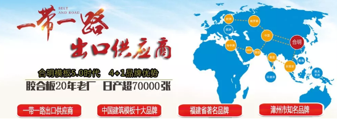 合明模板是国家注册知名品牌,一带一路出口供应商、中国建筑模板十大品牌、福建著名品牌、漳州知名品牌