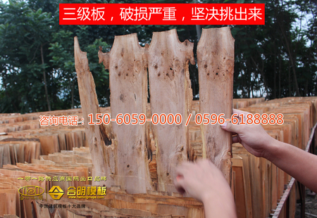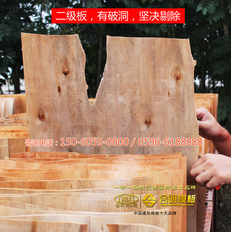 建筑模板芯板原材料分为一级、二级、三级三种,三级材料为原木旋切起来的第一、二层单板,破损严重;二级材料是那些掉疤的有破洞的单板,而一级材料为无破损、无掉疤,完整、平整的单板。材料价格,当然一级材料最高,其次为二级、三级。