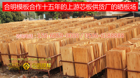 合明模板的芯板是用桉木或者松木制作的,而且无论是桉木还是松木,都只用一级材料,非一级材料全部剔除。所以从收购材料时的验板进库到晒板,再到材料出库,甚至到流水线排板,每一个环节合明都要注意挑出二级、三级材料,保证材料的一级纯粹性。