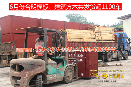 本月建筑模板共发货807车,其中酚醛板获销量冠军,合明特制酚醛胶水能有效阻隔水跟泥沙侵入板芯,故合明酚醛板防水防腐性能超强,适于多雨夏季使用。