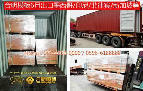 6月份出口建筑模板32货柜,分别发往墨西哥、印尼、菲律宾、新加坡、越南、阿尔及利亚等国家。其中合明覆膜板以27货柜艳压群芳,成为出口NO.1。合明覆膜板素有“海外黑马”之称,肯尼亚飞机库、美国塞班岛酒店、迪拜超高层建筑等项目均使用合明覆膜板。
