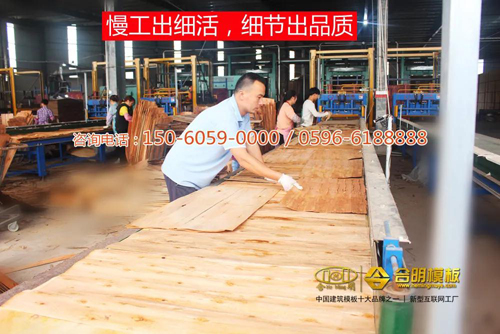 合明模板经营20多年来,用心做好每一张建筑模板,在胶水制作、单板滚胶、排板组胚、冷压热压、成品检验等每一个环节都格外注重细节,这才造就了合明模板的优佳好品质。