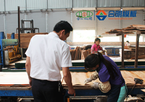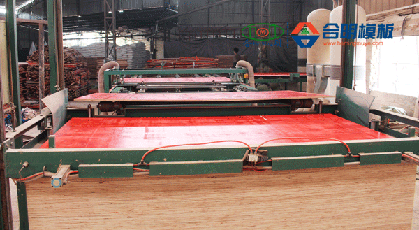 合明车间配备滚胶机、冷压机、热压机、切板机等制作建筑模板的完整工序设备。这些设备比一般模板生产厂先进。同时供给二十几台蒸汽压板机的大型锅炉、顺畅的排板流水线、自动化的裁板机等构成了合明的生产车间。合明慷慨投入,用最好的设备,做最优质的建筑模板!