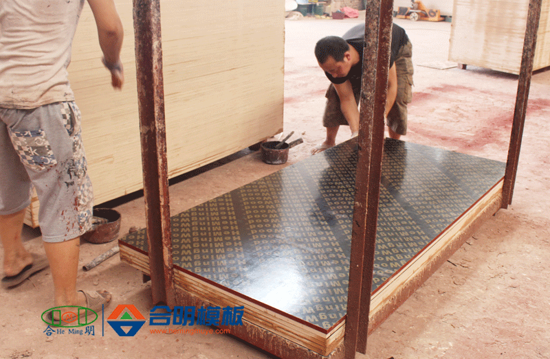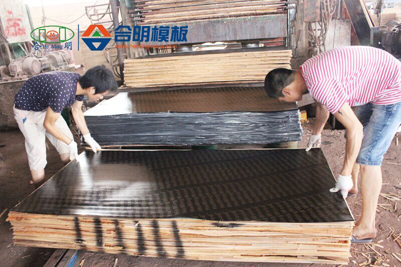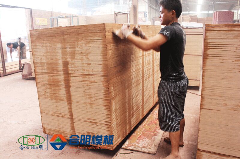 8、磨边,模板边缘涂防腐材料,喷制合明牌专属商标,打包入库。