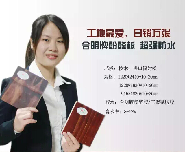 合明牌酚醛建筑模板是合明木业几大热销建筑模板之一。酚醛板又称苯酚板,其芯板和面板均采用一级板,经过芯板双面过胶、排板、冷压、热压合成。采用酚醛胶粘制而成,酚醛胶的压缩时间要比其他树脂胶如脲醛树脂和三聚氰胺胶水长很多,胶性更强。且酚醛胶耐水耐酸耐碱耐热,能够胶水分离,故酚醛建筑模板比其他模板防水效果更强,周转次数达到10次以上!