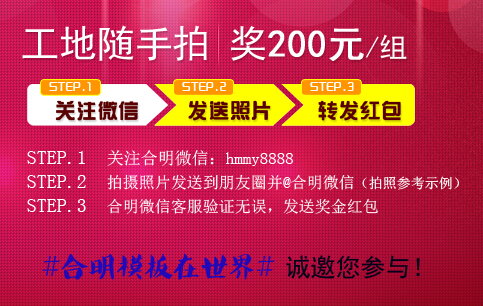 ==》合明模板在世界照片持续征集中,随手拍下合明模板在工地照片赚200元现金,一起来动动手指头赢取现金吧!
