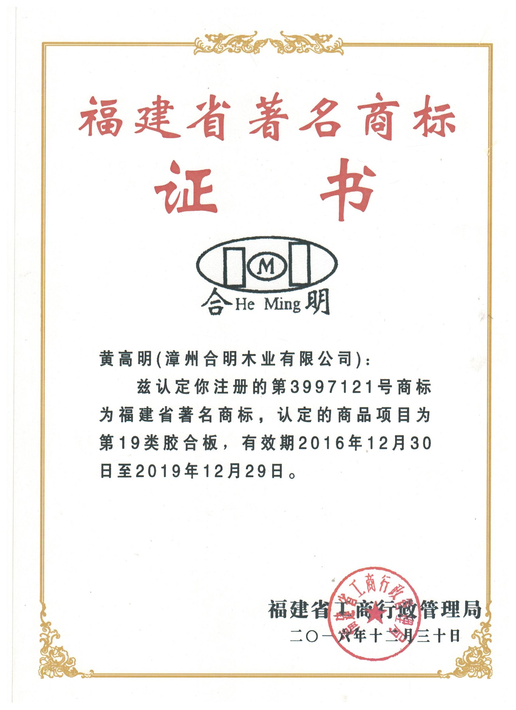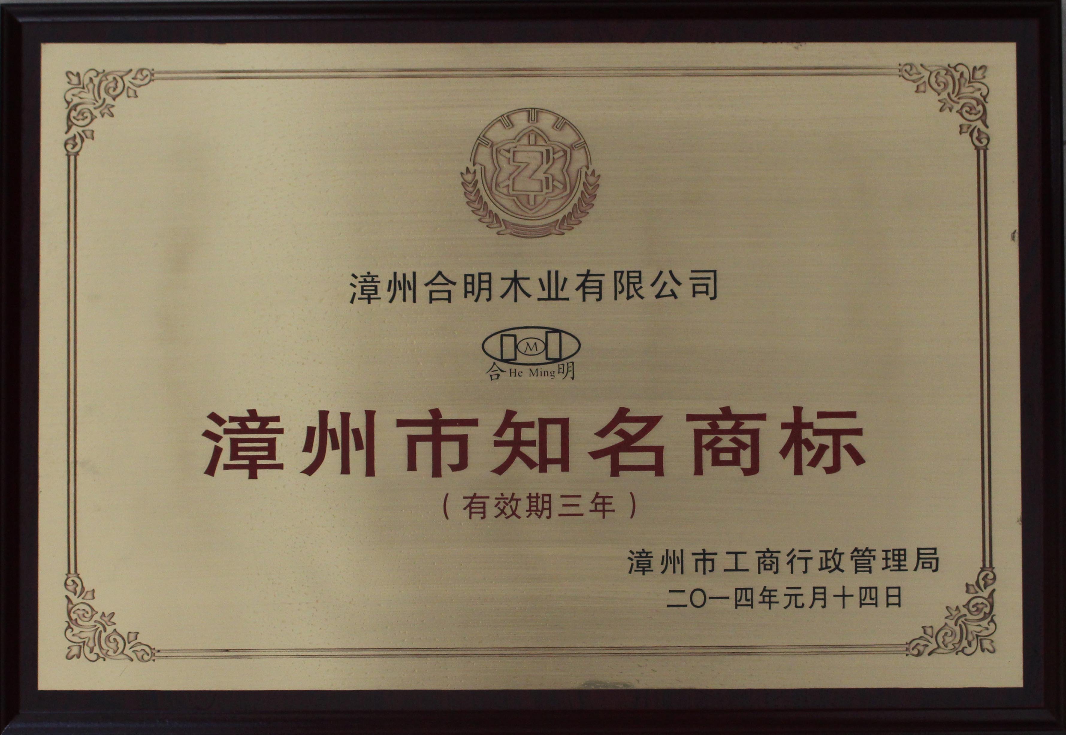 7、合明模板经漳州市工商局认定,成为漳州市知名商标。