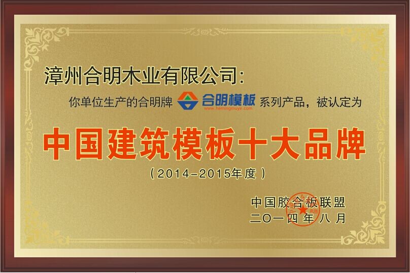 4、合明模板连续三年获得“中国建筑模板十大品牌”殊荣。