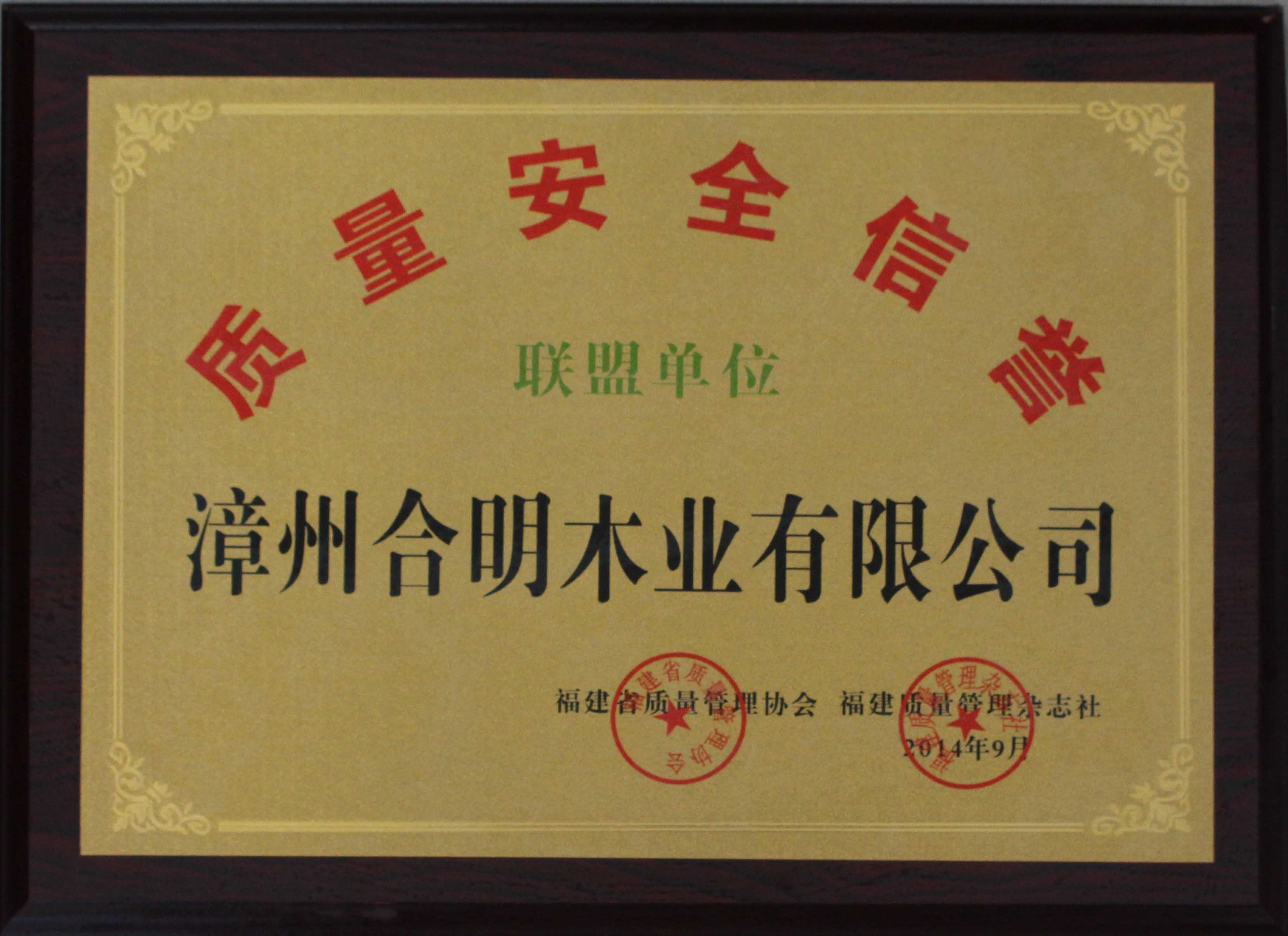 合明木业19年来运营良好,制度规范,产品质量良好,成为福建省最具规模的建筑模板企业。凭借多年来的诚信经营及良好运作合明木业获得该荣誉,这是合明模板品牌口碑的测量指标,更是木业行业的模范标杆。