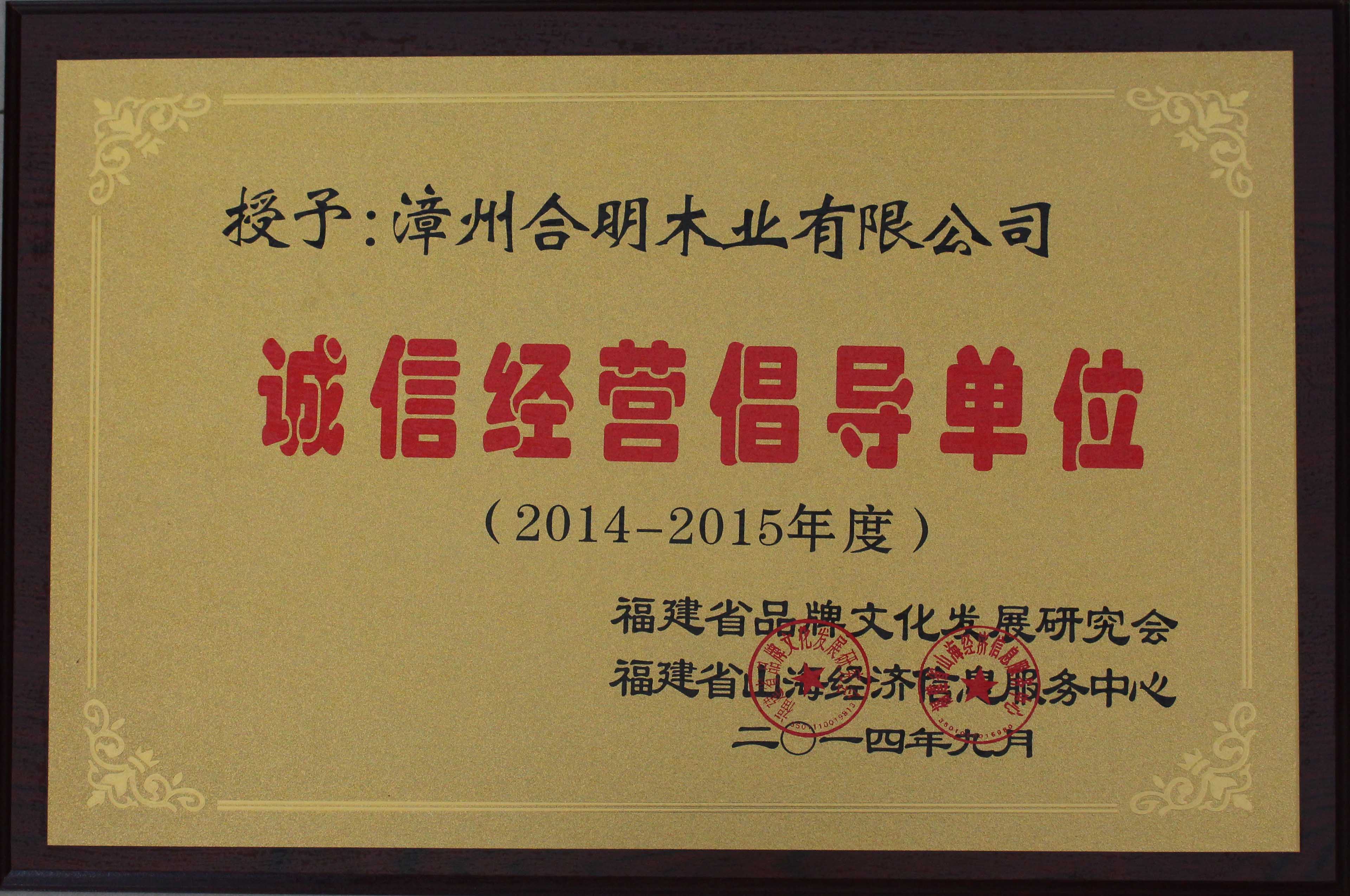 9、合明木业被授予福建省“诚信经营倡导单位”荣誉称号,该荣誉由福建省品牌文化发展研究会和福建省山海经济信息服务中心联合颁发。