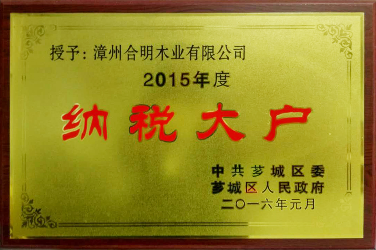 6、合明木业荣获福建省2016-2017年度“依法经营、诚信纳税”省级团体会员单位,该奖项是由福建省财税信息协会颁发。