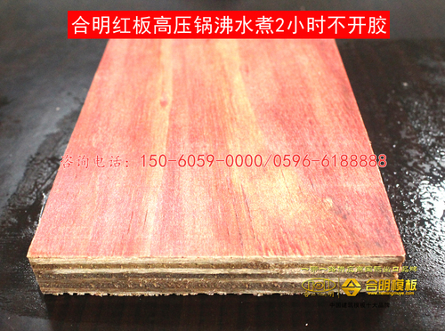 合明红板每一张均要进行翻板检验,挑出不合格的板,把板面胶水未滚均匀的涂均匀,不合格的产品不出厂。合明红板每天均要抽取边角料进行高压锅沸水煮2小时,挑出不合格的产品。