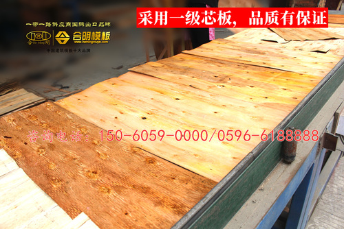 合明覆膜板采用进口松木一级面板、优质桉木一级芯板,以及特制防水胶为原材料,比市场上普通杂木建筑模板周转次数多。
