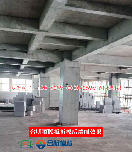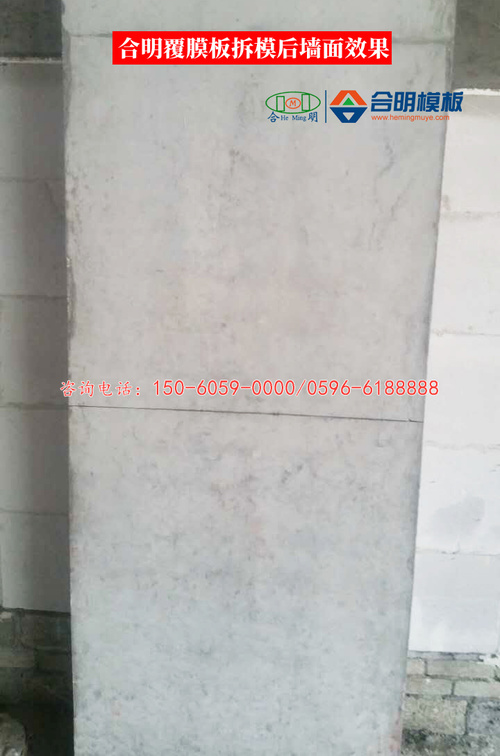 合明覆膜板表层膜厚实牢固,脱模不会对建筑物造成污染,且可以限制有害气体的释放量。覆膜板脱模后墙体平整光滑,可免于二次抹灰,大大缩短工期。