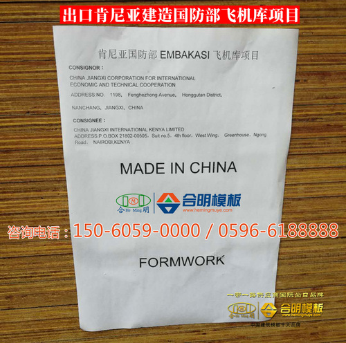 合明覆膜板,被评为中国覆膜板十大品牌,出口一带一路特供品牌,世界级品质,是中国建筑、中国铁建在海外的指定建筑模板,曾用于肯尼亚国防部飞机库项目、迪拜超八星级酒店等国际项目。