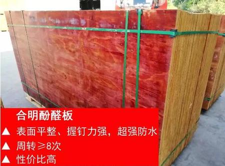 合明酚醛板集合了酚醛板中的优点,表面平整、内心坚实、防水防沙、周转次数高等,不仅如此,合明酚醛板在这些基础上精益求精,性能升级。自制的酚醛胶水滚均匀,大大增强模板的防水性能;全整一级芯板以及松木面板更造就了合明酚醛板8次以上的周转次数。合明酚醛板密实坚硬,风吹日晒雨淋一个月不变形不开胶。