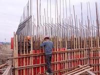 1.首先按要求在外墙体上预埋好穿墙螺栓的套管,当结构首层墙体混凝土强度达到lOMPa要求后,即可在预埋孔处安装穿墙螺栓和附墙装置,并在起重设备的配合下,安装主承力架及导轨、外墙模板及支承架、液压升降装置、防护栏杆、脚手板和安全网等。当二层外墙钢筋绑扎完成后,即可进行内、外墙模板的安装就位,检查合格后浇筑外墙混凝土。
