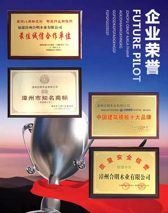 合明模板越做越大,在得到关注的同时也得到了各界的肯定。客户信任合明模板,不远千里到合明洽商。中国企业网、百年建筑网、中国木业信息网、网易、搜狐等各大媒体对合明木业进行了报道,赞赏合明进取的企业精神。不仅如此,合明还获得了“诚信经营倡导单位”、“质量安全信誉联盟单位”等近十项荣誉。