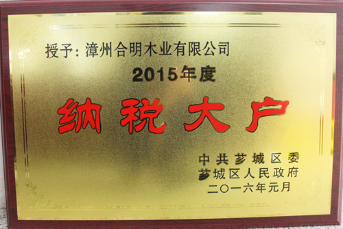 5、合明木业荣获福建省2015-2016年度“依法经营、诚信纳税”省级团体会员单位,该奖项是由福建省财税信息协会颁发。