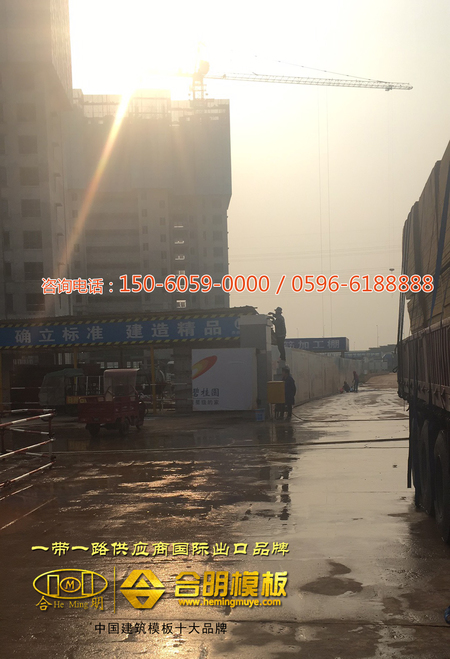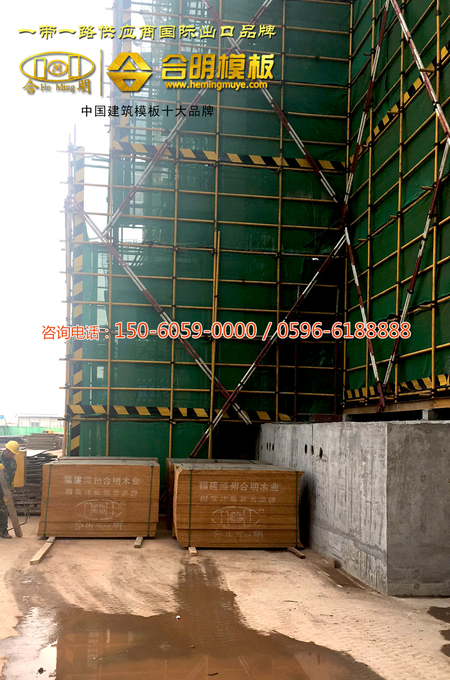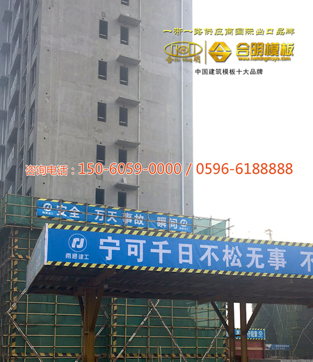 该工地反馈合明建筑模板平整耐用,质地非常结实,锯成小块模板不开胶,施工方便,因为外表平整,搭建起来的模板工程漂亮美观,工地工人夸奖合明模板施工便利,省下很多时间和精力。