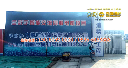 去年9月份开始,合明模板合作建造南通市全数字智能交流伺服电机项目,该项目为中联世纪建设集团有限公司承建。