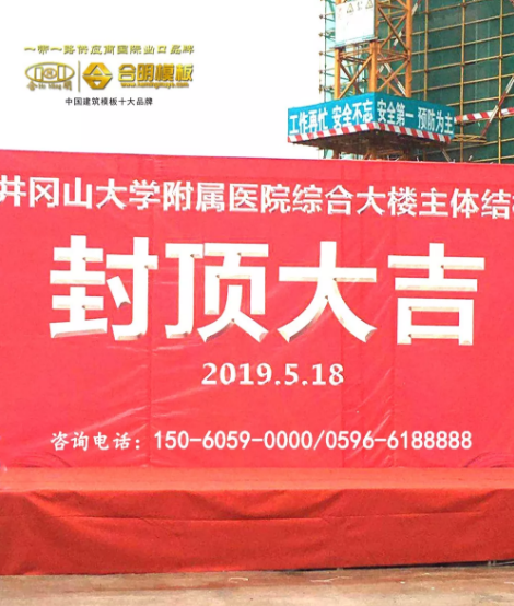 吉安市井冈山大学附属医院综合大楼封顶大吉!漳州合明木业有限公司、漳州高明实业有限公司热烈祝贺!